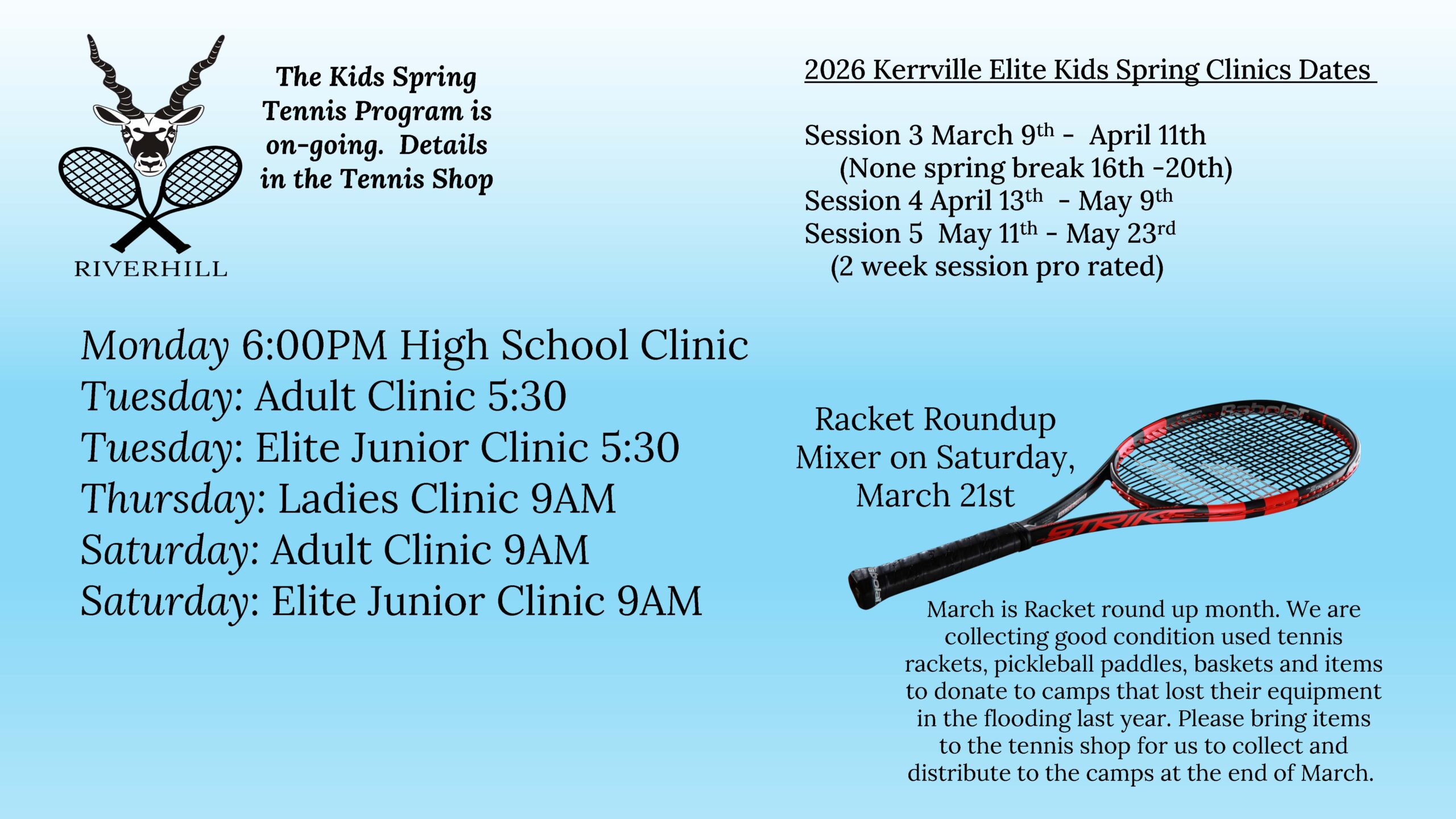 Riverhill Tennis Calendar 2026